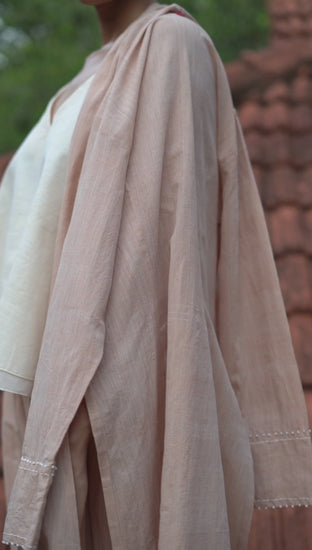 Zoom Set of 3- Beige Organic cotton long embroidered Jacket, Top & Pant Set